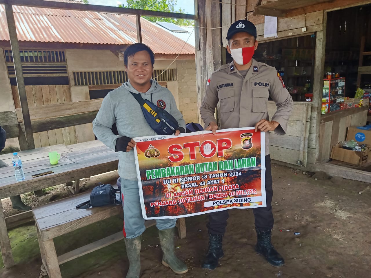 Supaya tidak terjadinya kebakaran lahan untuk berladang di wilayah hukum Polsek Siding Resort Bengkayang Polda Kalbar Anggota Polsek Siding Aipda Bonny Setiawan dengan penuh semangat ajak warganya di Kecamatan Siding menggunakan banner untuk mengajak bersama sama mencegah karhutla agar tidak membakar sembarangan yang mengakibatkan sakit sesak nafas, Jumat (09/09/2022).