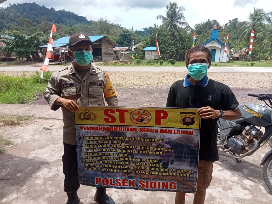 Sementara itu Kapolsek Siding, Ipda Bambang Rudiyanto, mengatakan Polsek Siding terus melakukan himbaun-himbau stop Karhutla setiap hari melalui Door to Door Sistem atau berkunjung kerumah warga, hal ini kita lakukan guna menjaga situasi Kamtibmas tetap kondusif, menjalin komunikasi dan silaturahmi yang baik antara Polri khususnya Bhabinkamtibmas terhadap tokoh masyarakat, terkait larangan Karhutla kita sampaikan masyarakat tidak membakar hutan dan lahan,