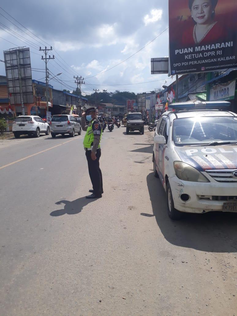 Bengkayang- Personil Satuan Lalu Lintas Polres Bengkayang melaksanakan patroli dan pengaturan lalu lintas untuk mencegah kepadatan kendaraan pada siang hari di jalan raya merupakan tugas pokok yang tidak lepas dari kepolisian, Kamis (05/08/2021).