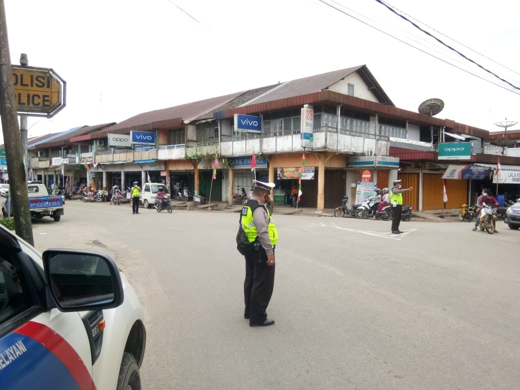 Bengkayang- Personil Satuan Lalu Lintas Polres Bengkayang melakukan pengaturan lalu lintas untuk mencegah kepadatan kendaraan pada siang hari di jalan raya merupakan tugas pokok yang tidak lepas dari kepolisian, Selasa (17/08/2021).