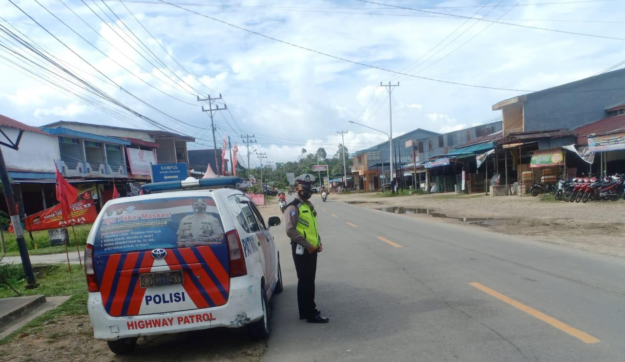 Bengkayang- Anggota Satuan Lalu Lintas Polres Bengkayang melaksanakan pengaturan lalu lintas untuk mencegah pelanggaran dan cegah terjadinya kecelakan lalu lintas di jalan raya merupakan tugas pokok yang tidak lepas dari kepolisian, Rabu (21/07/2021).