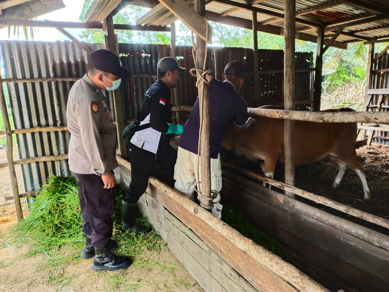 Dalam upaya mencegah dan memutus mata rantai penyakit mulut dan kuku (PMK), Polsek Binjai Hulu, petugas dari Dinas Pertanian dan Peternakan Kab. Sintang dan petugas PPL Poskeswan Kec. Binjai Hulu melakukan monitoring dan pendampingan giat pelaksanaan vaksin PMK bagi peternak sapi di Desa Binjai Hulu Kec. Binjai Hulu, Rabu (03/08/2022).