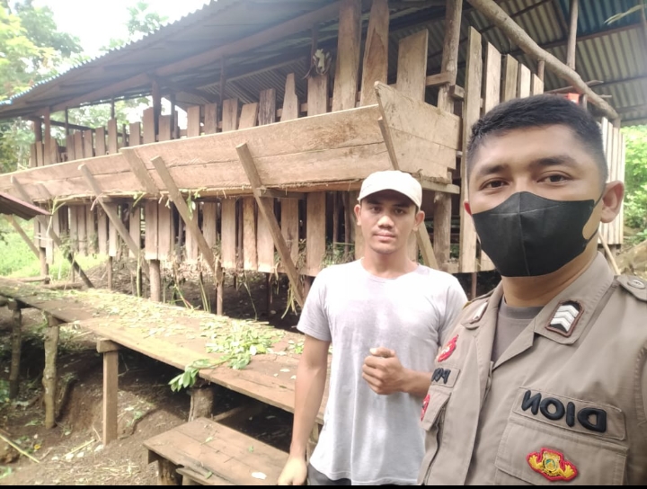 Polda Kalbar, Polres Bengkayang.- Jum’at,(29/05) Bhabinkamtibmas Dusun Romo Desa Gua Polsek Sanggau Ledo Brigadir Dionisius Imam Sadewo sambang ke peternak Sapi di Desa binaanya. Datang dan memberi himbauan serta informasi penyakit pandemi hewan ternak yaitu Penyakit Mulut dan Kuku (PMK).