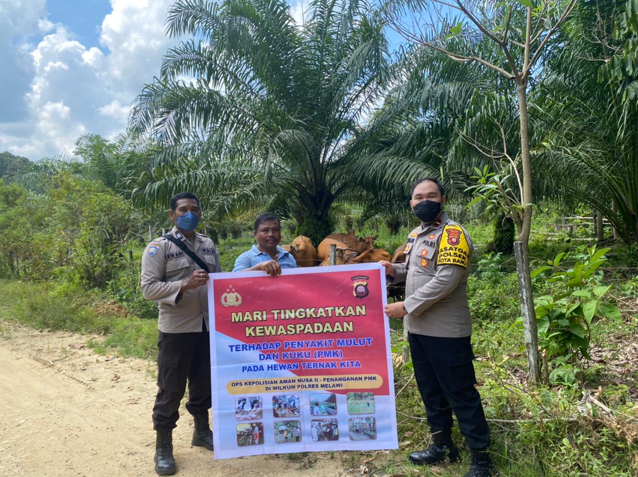Kapolres Melawi AKBP Sigit Eliyanto Nurharjanto, S.I.K. melalui Kapolsek Kota Baru Ipda Aditya Jaya Laksana Maulana mengatakan kegiatan yang dilakukan sebagai upaya pencegahan dan mengantisipasi penyebaran Penyakit Mulut dan Kuku (PMK), Jumat (22/7/2022).