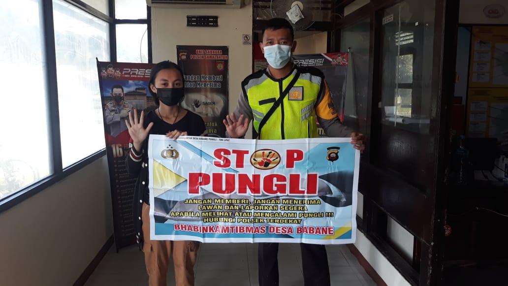 Seperti yang dilakukan Briptu Yehezkiel kepada warga dengan memberikan edukasi serta pemahaman pentingnya tindakan Stop Pungli lewat spanduk pada Rabu tanggal 2 Juni 2021 pagi.