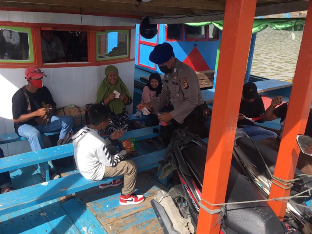 Dalam rangka menjaga kamtibmas tetap kondusif, serta mecegah dan memutus mata rantai penyebaran virus Covid-19 ,Personil Sat Polair Polres Bengkayang menyambangi dan melakukan pengawasan penerapan protokol kesehatan kepada warga masyarakat yang sedang berada di dalam KM.Sila Lemukutan yang sedang sandar di dermaga Teluk Suak Desa Karumunting Kec. Sungai Raya Kepulauan Kab. Bengkayang.