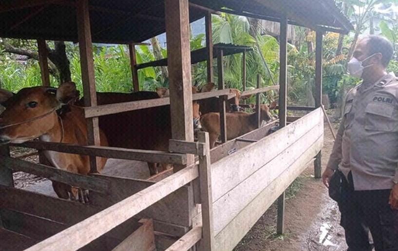 Polsek Bengkayang. Menyikapi situasi nasional saat ini mengenai penyebaran Penyakit Mulut dan Kuku (PMK) pada hewan, Bhabinkamtibmas Polsek Bengkayang Polres Bengkayang melakukan beberapa upaya pemantauan dan pencegahan dengan cara mensosialisasikan penyakit PMK tersebut kepada peternak yang berada di wilayah Kecamatan Bengkayang.
