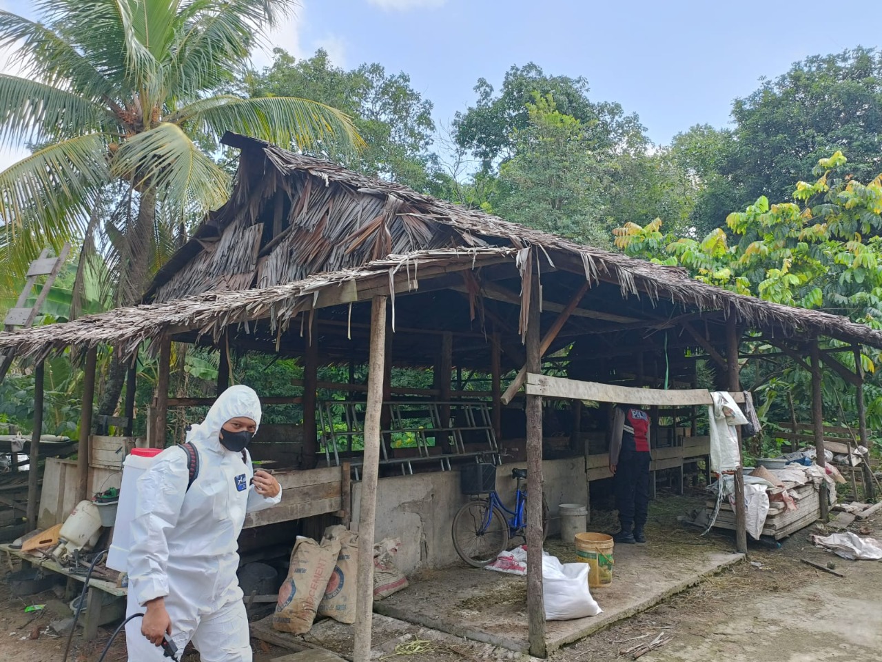 Pengecekan ke peternak sapi diikuti dengan tindakan aksi nyata berupa penyemprotan disinfektan ke kandang-kandang ternak milik warga . Adapun Sasaran yang menjadi target pengecekan, penyemprotan dan penyuluhan pada hari ini adalah kandang sapi milik Ibu Jamilah Gang belimbing, Jalan Madusari, Kecamatan Sungai Raya Kabupaten Kubu Raya yang berjumlah 3 ekor dimana kedua hewan tersebut dalam keadaan sehat.