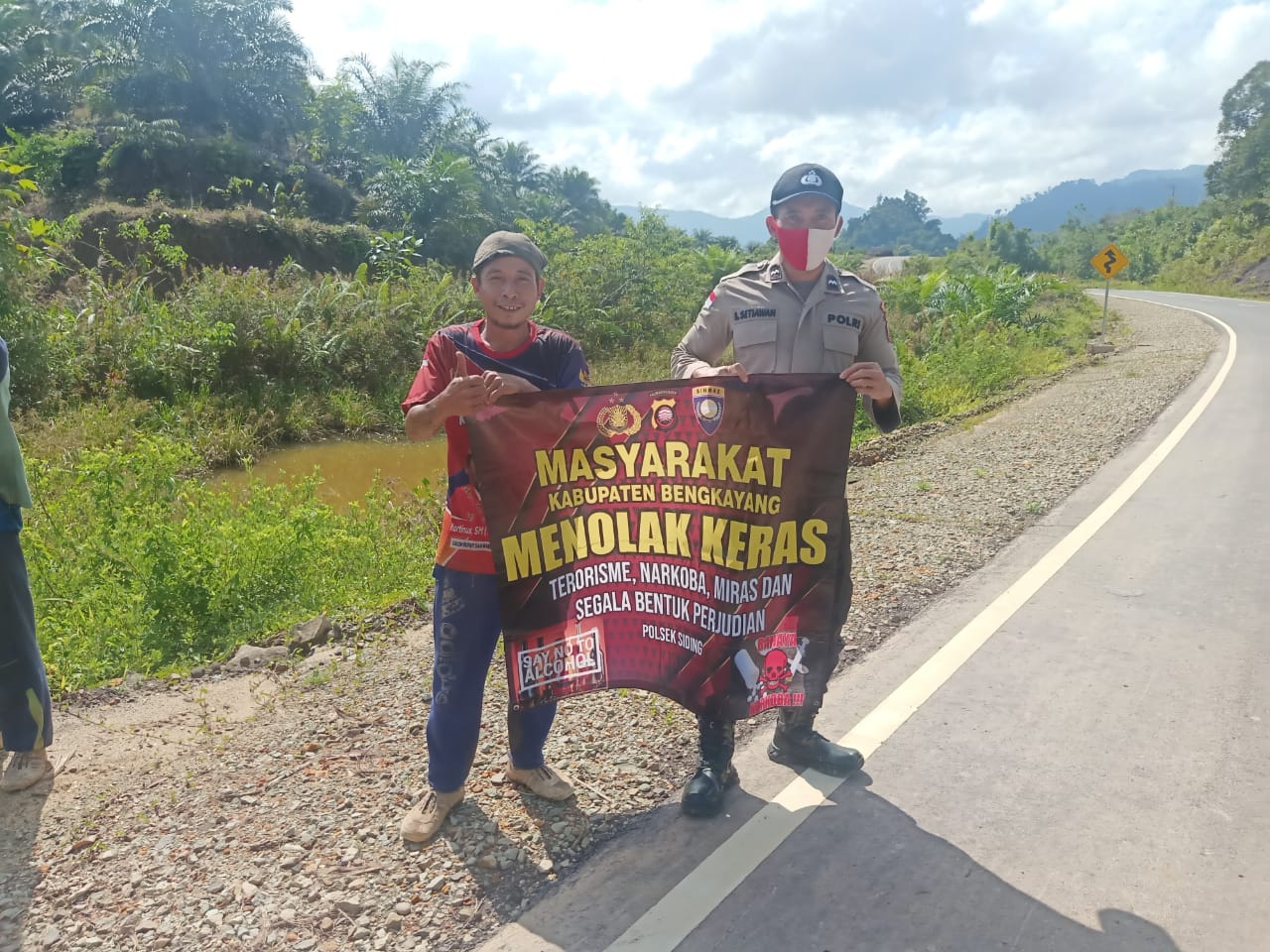 Patroli dialogis dalam rangka antisipasi ada penyakit masyarakat di desa Siding kabupaten Bengkayang, Aipda Boni Setiawan ingatkan warga tetap waspada terhadap kejahatan Teroris, Narkoba, Penggunaan Miras dan Bentuk perjudian,