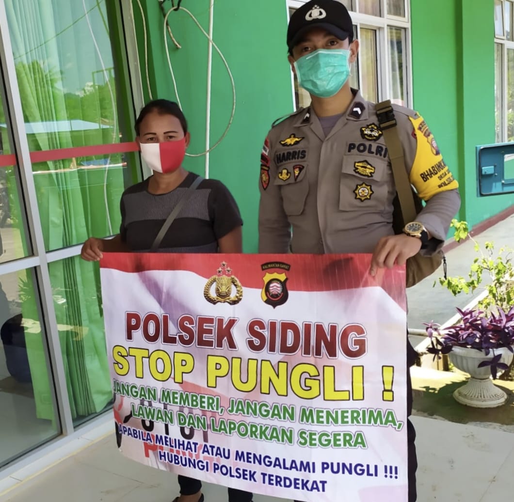Kapolsek Siding, Ipda Bambang Rudiyanto mengatakan, “Pencegahan dapat melalui himbaun atau sosialisasi yang dilakukan personel Bhabinkamtibmas kepada masyarakat, dengan demikian masyarakat betul-betul mengerti dan memahami aturan tersebut dengan jelas, serta pembentukan mental berkaitan SDM, yaitu SDM yang tidak membiarkan kebiasaan memberi dan menerima pada pembiayaan yang bukan semestinya pada proses pelayanan publik, sehingga tercipta pelayanan publik yang bersih khusus di daerah Polsek Siding dari sifat KKN dan sebagainya berkaitan dengan Pungli,