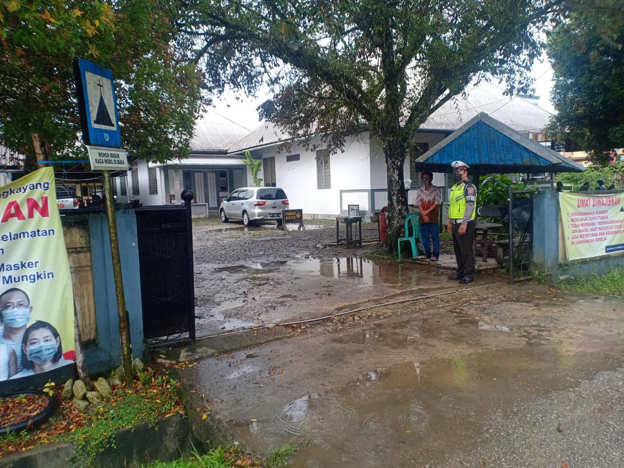 Polres Bengkayang – Guna terciptanya rasa aman dan nyaman saat ibadah Misa, Personil Satlantas Polres Bengkayang laksanakan gatur lantas dan pengamanan Gereja di Gereja Santo Pius X Bengkayang, Minggu (15/08/2021) pagi.