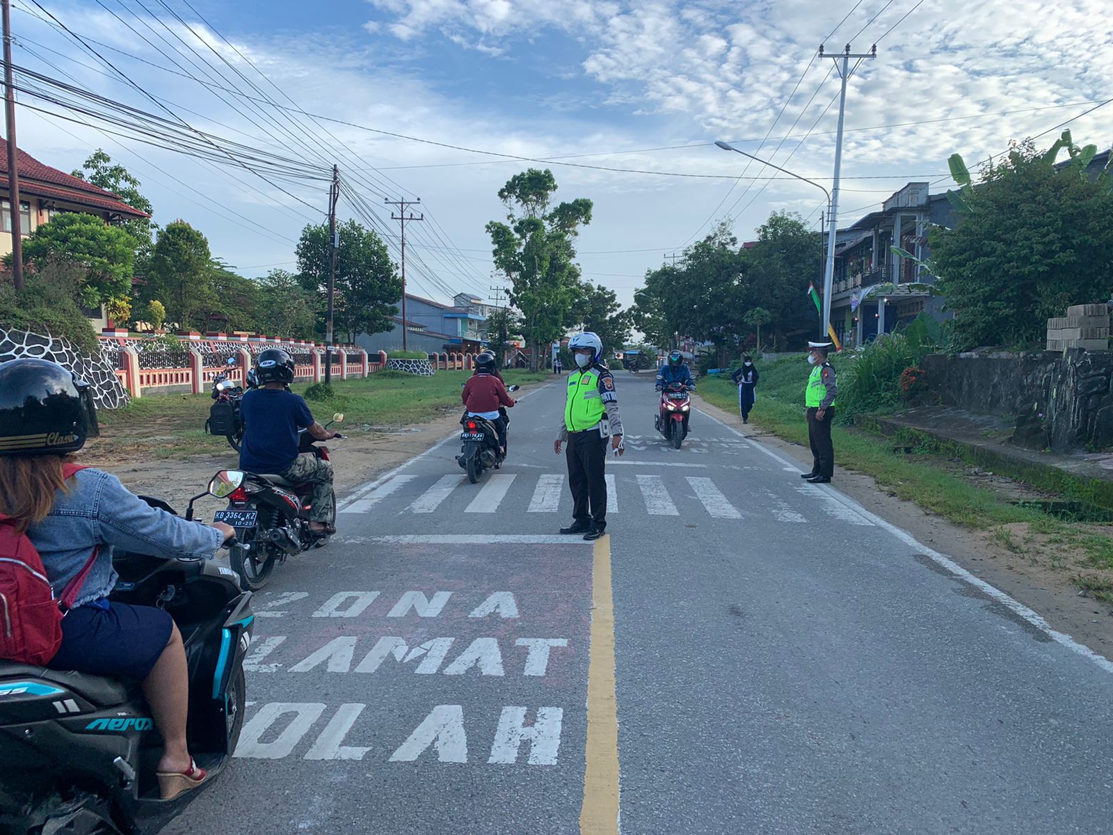 Bengkayang- Personil Satuan Lalu Lintas Polres Bengkayang melaksanakan pengaturan lalu lintas untuk ciptakan rasa aman dan nyaman pengguna jalan dalam beraktivitas serta cegah terjadinya kecelakan lalu lintas di jalan raya merupakan tugas pokok yang tidak lepas dari kepolisian, Jum’at (10/09/2021) Pagi.