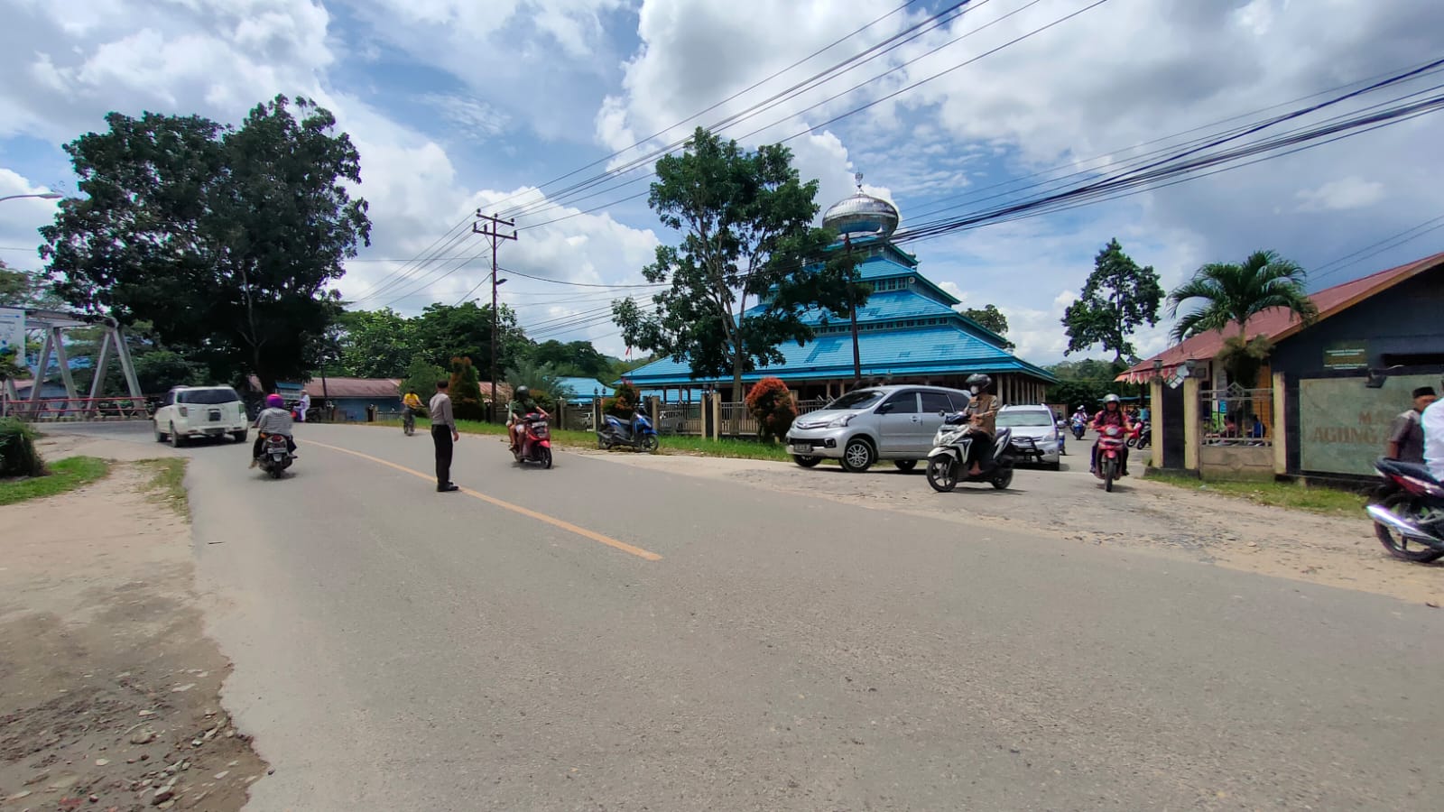 Anggota polsek Bengkayang memberikan pelayanan kepada masyarakat berupa pengamanan dan pengaturan lalu lintas ibadah sholat Jum’at di masjid Agung Suhada Bengkayang , Jum’at (21/10/2022).