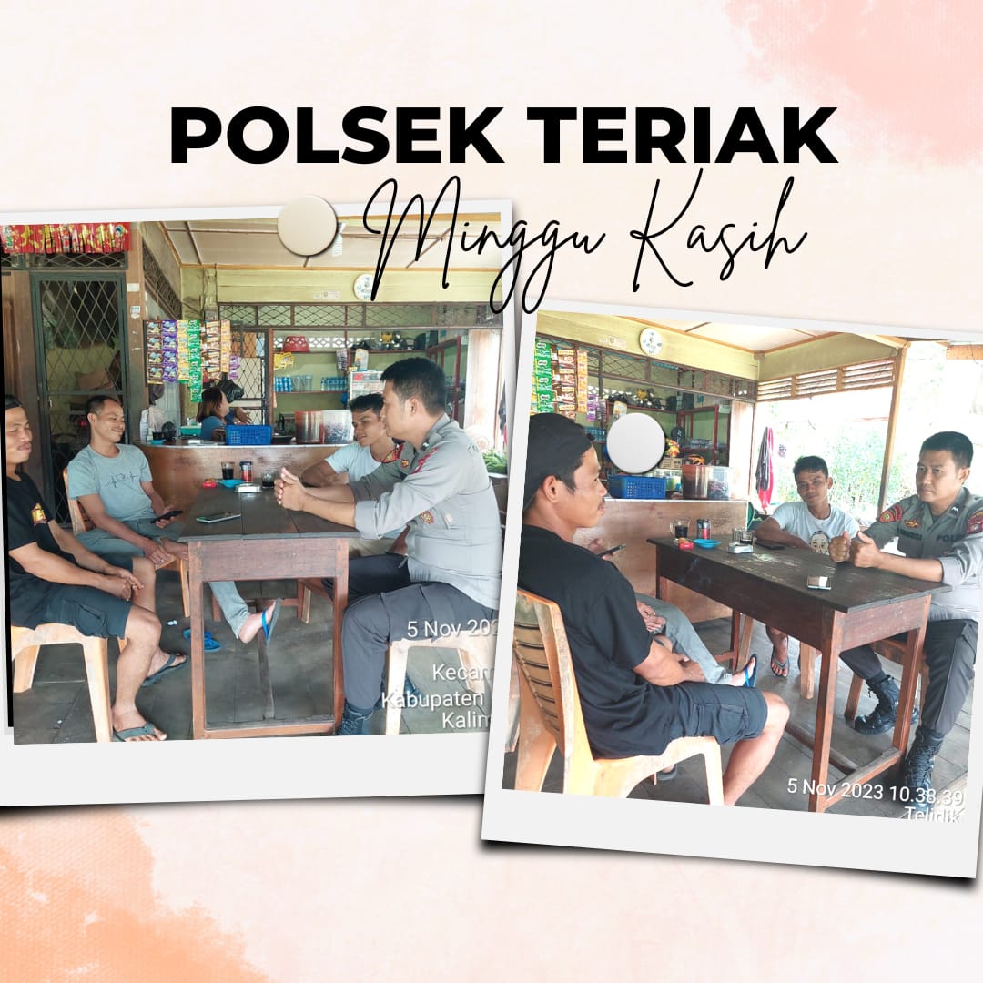 Dalam kegiatan ini Anggota Polsek Mangaran Sebagai pelindung, pengayom, dan pelayan masyarakat, Polsek Teriak melaksanakan kegiatan Minggu kasih untuk mendengarkan keluh kesah dan masukan dari masyarakat , Selain mendengar keluh kesah warga, Minggu kasih juga sebagai upaya untuk mempererat silaturahmi,meng Implementasikan Polri hadir di tengah Masyarakat.