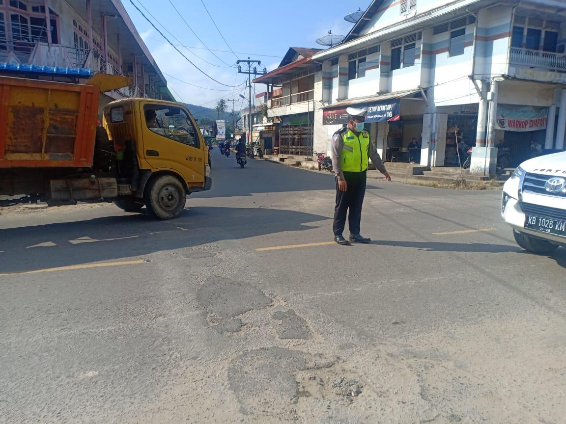 Bengkayang- Anggota Satuan Lalu Lintas Polres Bengkayang melaksanakan pengaturan lalu lintas untuk mencegah kepadatan kendaraan dan cegah terjadinya kecelakan lalu lintas di jalan raya merupakan tugas pokok yang tidak lepas dari kepolisian, Senin (26/07/2021) Pagi.