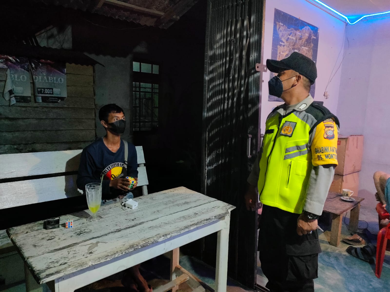Polres Bengkayang, Polsek Monterado-Personel Polsek Monterado Bripka Pepel melaksanakan Kegiatan Kepolisian Yang Ditingkatkan dengan patroli malam ke tempat berkumpulnya warga Desa Monterado Kec. Monterado.