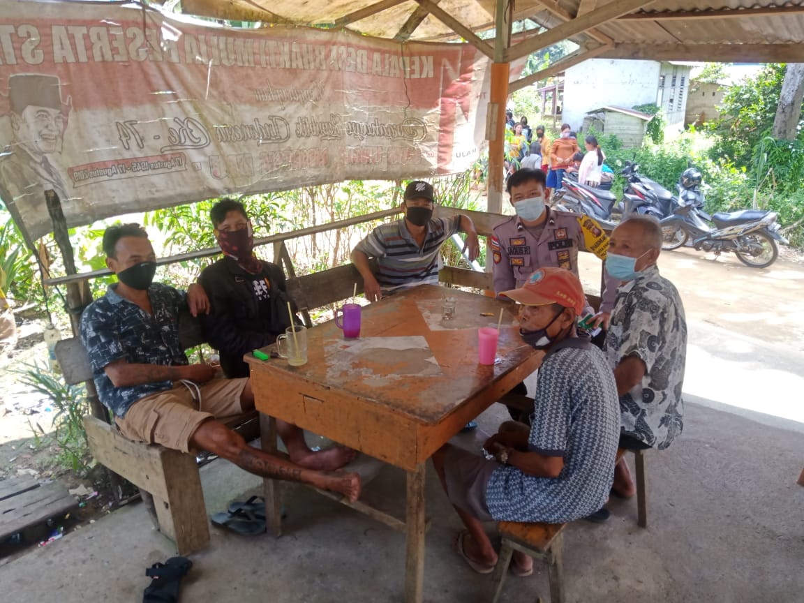 Salah satunya Bhabinkamtibmas Desa. Bhakti Mulya Bripda Agus Rianto dengan humanis menyambangi warga yang sedang berkumpul di Desa.Bhakti Mulya serta memberikan himbauan agar selalu patuhi protokol kesehatan.