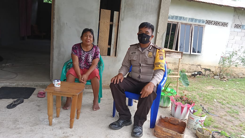 Bhabinkamtibmas Desa Rantau Bripka Abui dalam sambangnya ke Desa binaan bertemu dengan warga binaan memberikan pesan- pesan Kamtibmas dan himbauan Protokol Kesehatan 5M dalam mencegah penularan Virus Covid 19, sekaligus turut serta mengajak menjaga keamanan yang kondusif desa.