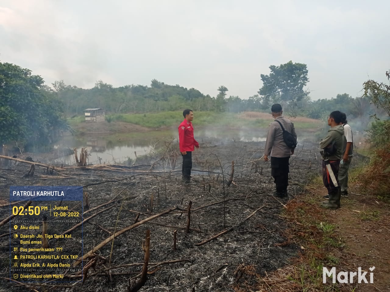 Kapolsek Bengkayang Iptu Harto Simanjuntak mendapatkan Informasi tentang adanya titik hot spot di Kec Bengkayang dengan titik koordinat lintang 0° 50′ 40.7″N109°27’31.8″ E,