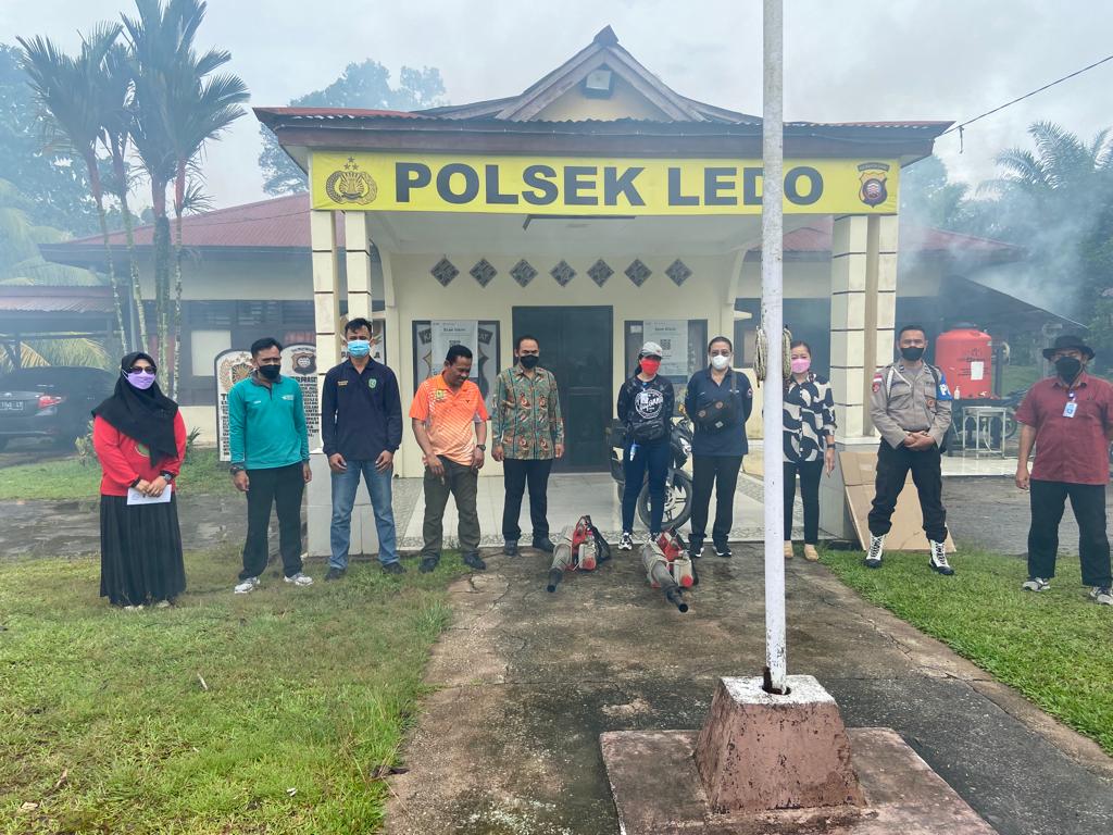 Fogging dilakukan mako Polsek Ledo dan lingkungan sekitarnya terkait ditemukan kasus DBD yang dialami oleh salah satu anggota Polsek Ledo.