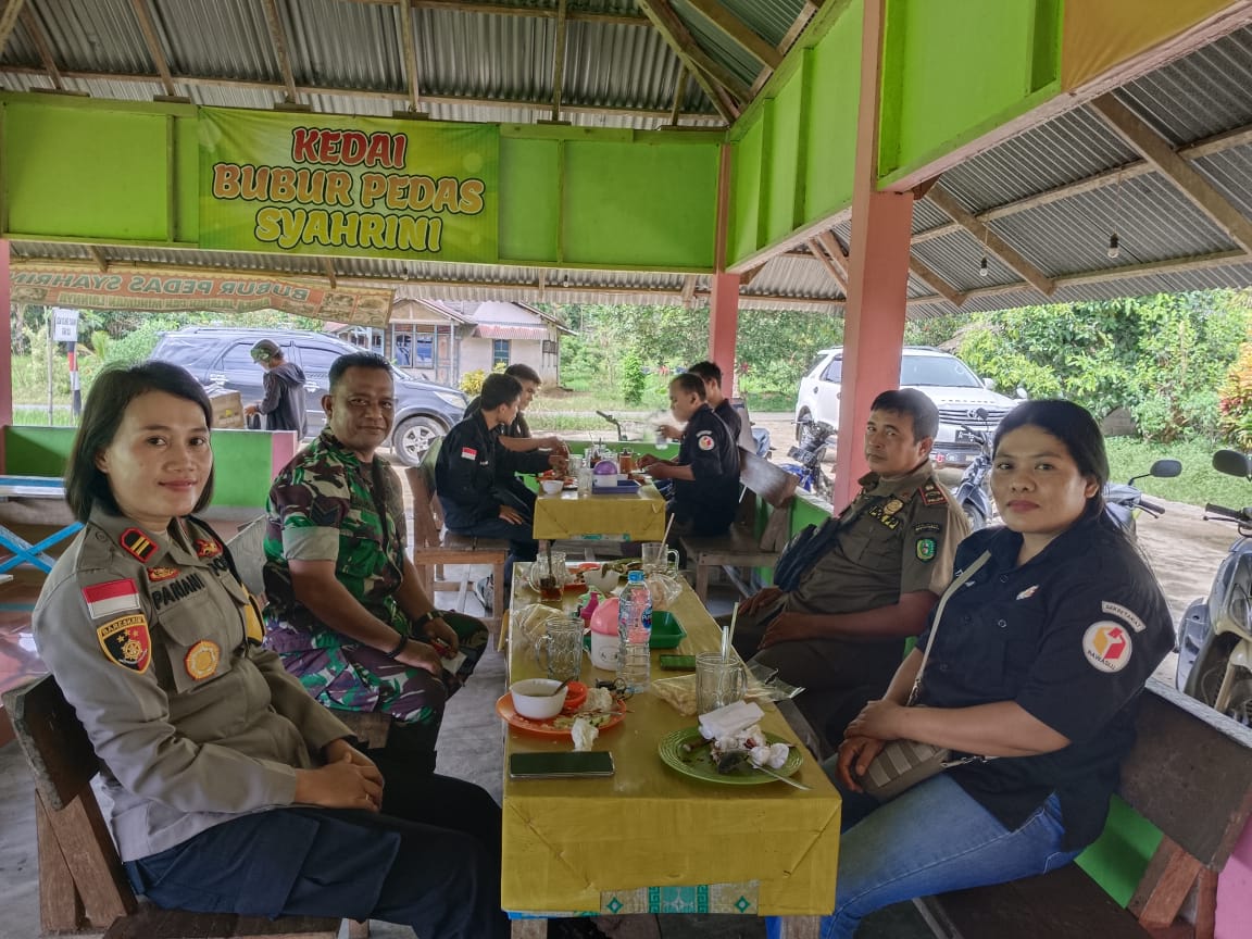 Diskusi santai Kapolsek Sungai Betung bersama panwaslu dan unsur Muspika dalam giat “Jum’at curhat” membahas persiapan pemilu di kecamatan Sungai Betung.