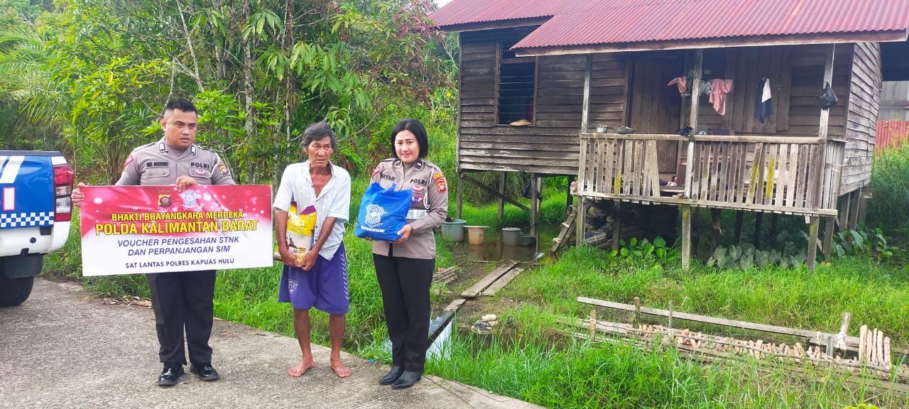Kapuas Hulu – Sat Lantas Polres Kapuas Hulu melaksanakan kegiatan Bakti Bhayangkara Merdeka dengan pembagian sembako dan voucher perpanjangan/pembuatan SIM serta pengesahan STNK secara gratis, Sabtu (3/9/2022).