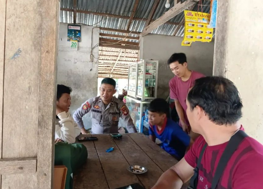 Polres Bengkayang – anggota polsek Teriak Polres Bengkayang mendengarkan aspirasi masyarakat melalui program “Jumat Curhat” Di salah satu warung milik Masyarakat di desa Teriak, Kec. Teriak Kab. Bengkayang, Jumat (22/03/2024)