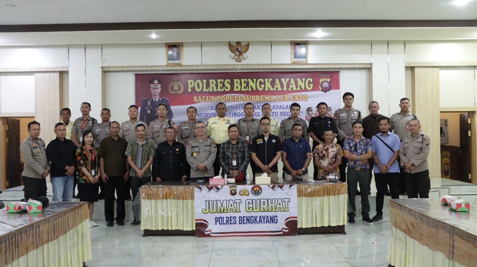 Bengkayang, Kalbar – Kepolisian Resor Bengkayang Polda Kalbar menggelar kegiatan bertajuk Jum’at Curhat dengan mengambil tema “HUT Satpam Ke-43 Tahun 2023 dan Peningkatan Kompetensi Satpam Mendukung Pemilu 2024”, bertempat di Aula Tunggal Panaluan, Jum’at (24/11/23) pagi.