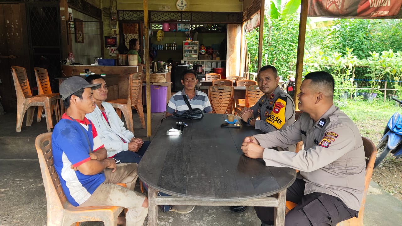 Kapolsek Teriak Polres Bengkayang Iptu Romi Maryadi S.Sos. mendengarkan aspirasi masyarakat melalui program ‘Jumat Curhat’ di salah satu warung Kopi yang ada di Desa Bangun Sari Kecamatan Teriak Kab. Bengkayang, Jumat (19/01/2024)