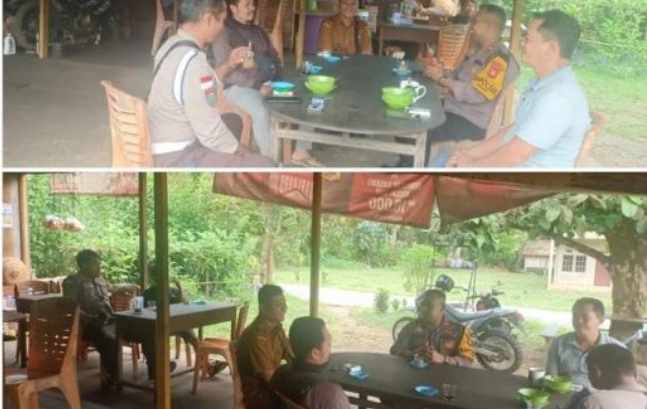 Kapolsek Teriak Polres Bengkayang Iptu Romi Maryadi S.Sos. mendengarkan aspirasi masyarakat melalui program ‘Jumat Curhat’ di salah satu warung Kopi yang ada di Desa Bangun Sari Kecamatan Teriak Kab. Bengkayang, Jumat (15/03/2024)