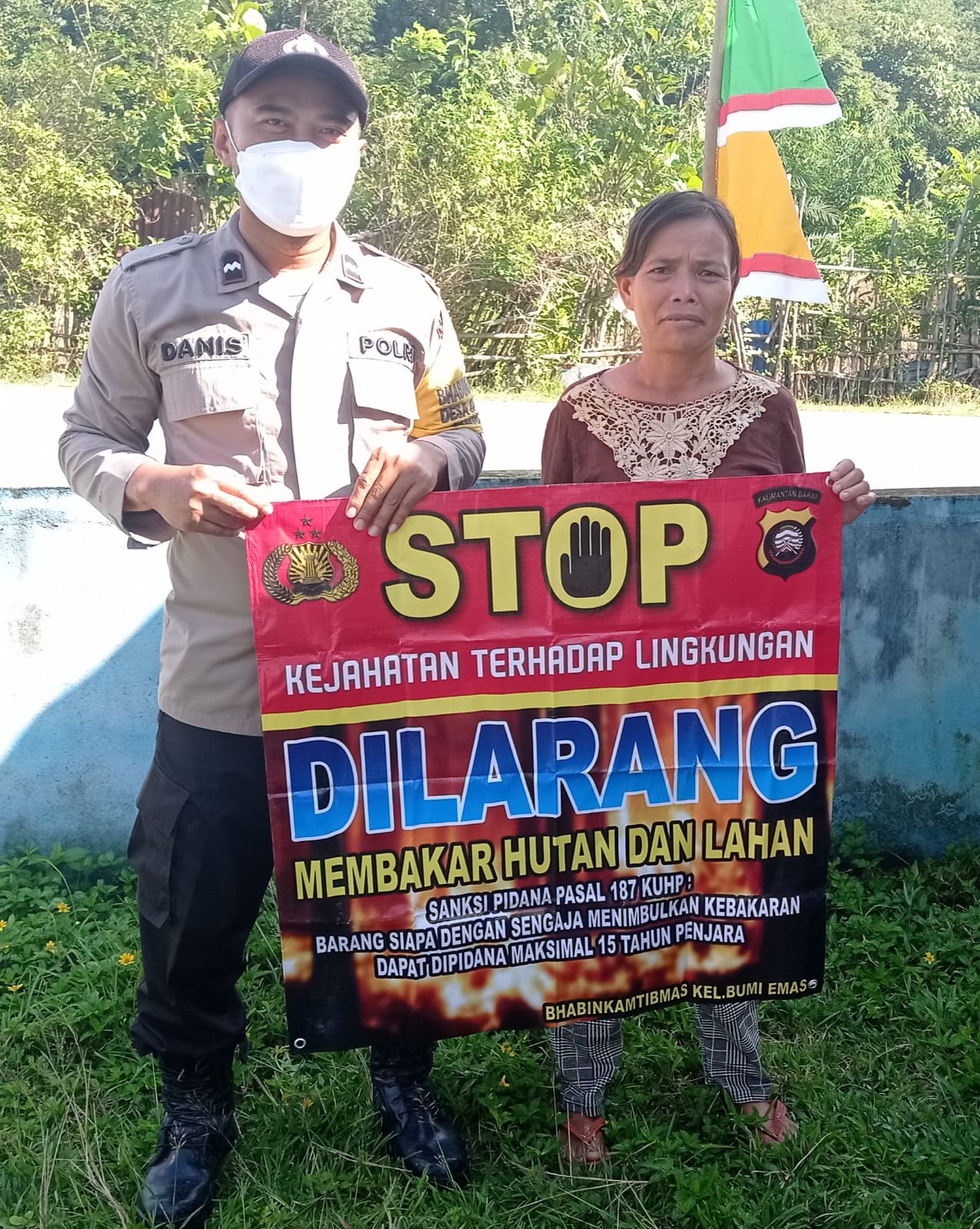 BhabinKamtibmas Desa.Bani Amas Polsek Bengkayang Polres Bengkayang Aipda Danis Untoro memberikan himbauan terkait kamtibmas di Desa Binaannya Serta menghimbau Warga Untuk tidak Membakar Hutan dan lahan Baik pada saat musim kemarau ataupun Musim Penghujan, Sabtu (24/09/2022).