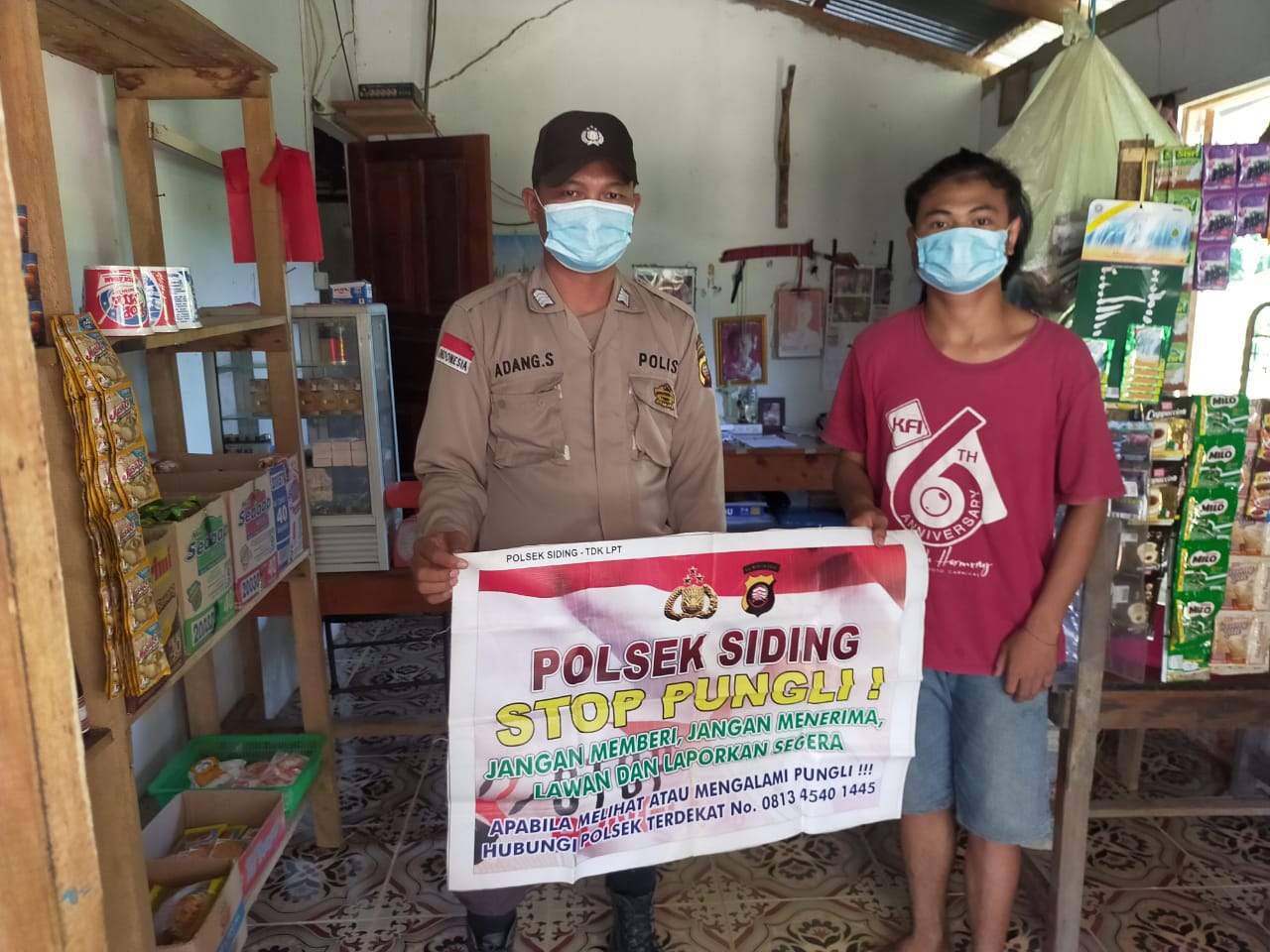 Jajaran Polsek Siding Polres Bengkayang gencar memberikan sosialisasi dan himbauan stop pungli (pungutan liar) kepada masyarakat. Hal tersebut dilakukan sesuai perintah dan penekanan Kapolsek Siding IPDA Bambang Rudiyanto.