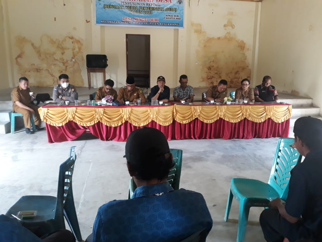 Bhabinkamtibmas Desa Sungai Duri Briptu Muhammad Harist Arrafsanjani melaksanakan dan menghadiri kegiatan musyawarah Desa Tetang penyusunan Rancangan Rencana Kerja Pemerintah Desa tahun anggaran 2023 desa Sungai Duri Kec. Sungai Raya Kab. Bengkayang
