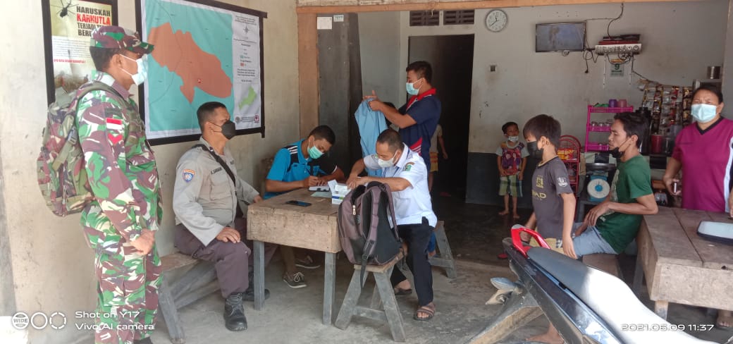 Adapun pada pelaksanaannya giat tersebut di lakukan dengan melakukan uji kesehatan melalui tes Swab Anti Gen kepada 15 orang warga yang berasal dari desa Setia Jaya dan desa Teriak.