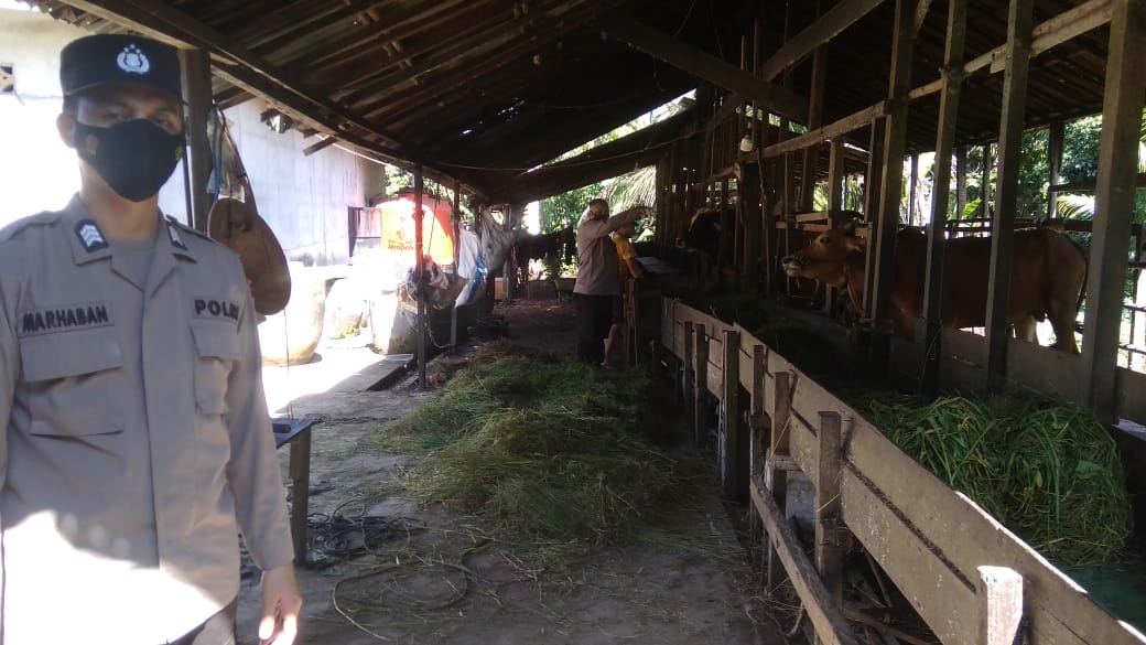 KUBU RAYA, KALBAR-Satgasops Aman Nusa II yang dipimpin Wasatgas 1 pencegahan Kompol Gatot purwanto, S.H melakukan pengecekan hewan ternak dan memberikan edukasi tentang wabah Penyakit Mulut dan Kuku (PMK) kepada pemilik ternak Bapak suyadi di Desa Arang limbung Kec Sungai raya Kab Kubu Raya, Rabu (20/7/2022).