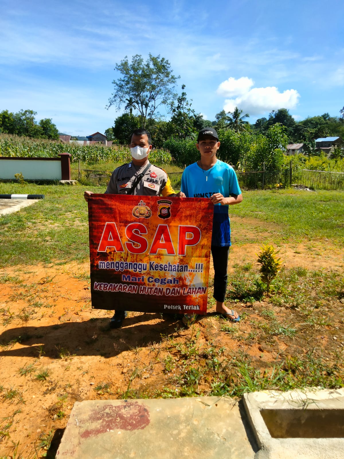 Bripka Inti selaku personil Polsek Teriak melaksanakan kegiatan rutin guna mencegah kebakaran hutan dan lahan yang saat ini masih marak terjadi di berbagai wilayah Indonesia.