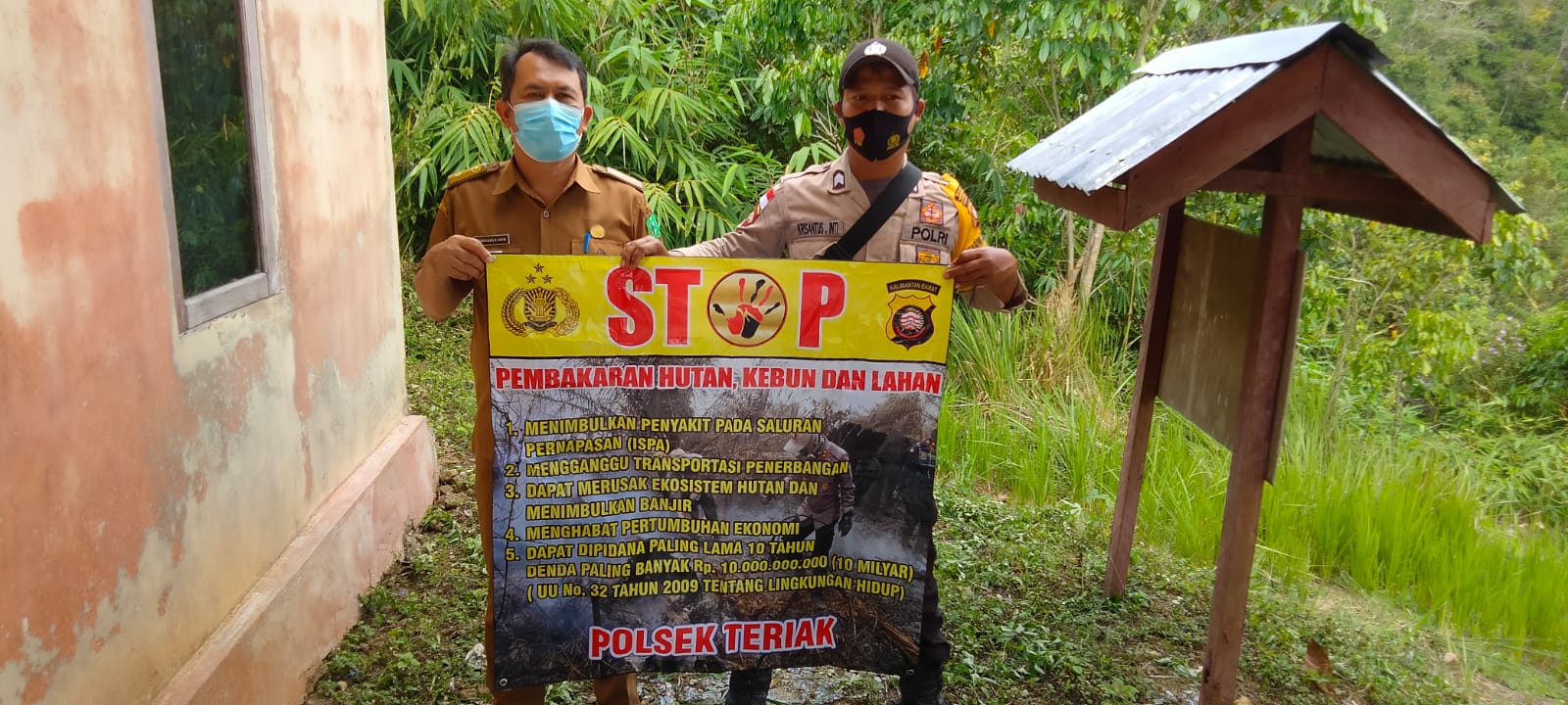 Bripka Inti selaku personil Polsek Teriak melaksanakan kegiatan rutin guna mencegah kebakaran hutan dan lahan yang saat ini masih marak terjadi di berbagai wilayah Indonesia.