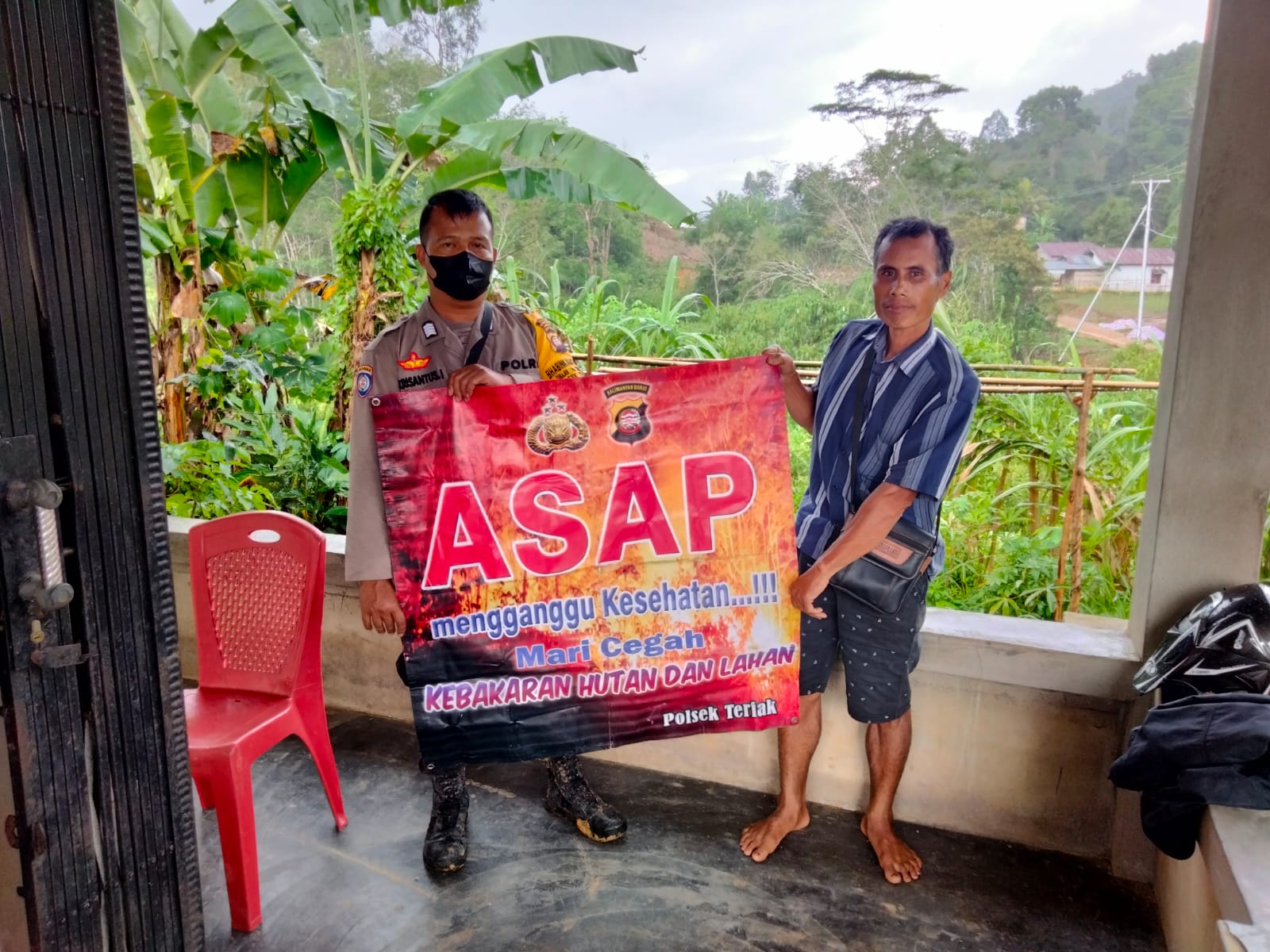 Bripka Inti selaku personil Polsek Teriak melaksanakan kegiatan rutin guna mencegah kebakaran hutan dan lahan yang saat ini masih marak terjadi di berbagai wilayah Indonesia.