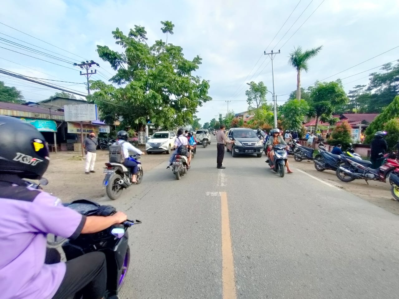 Strong point ini dilaskanakan oleh sejumlah anggota Polsek Bengkayang. Mereka membantu anak sekolah menyebrang dan melakukan pengaturan lalu lintas guna mencegah fatalitas.