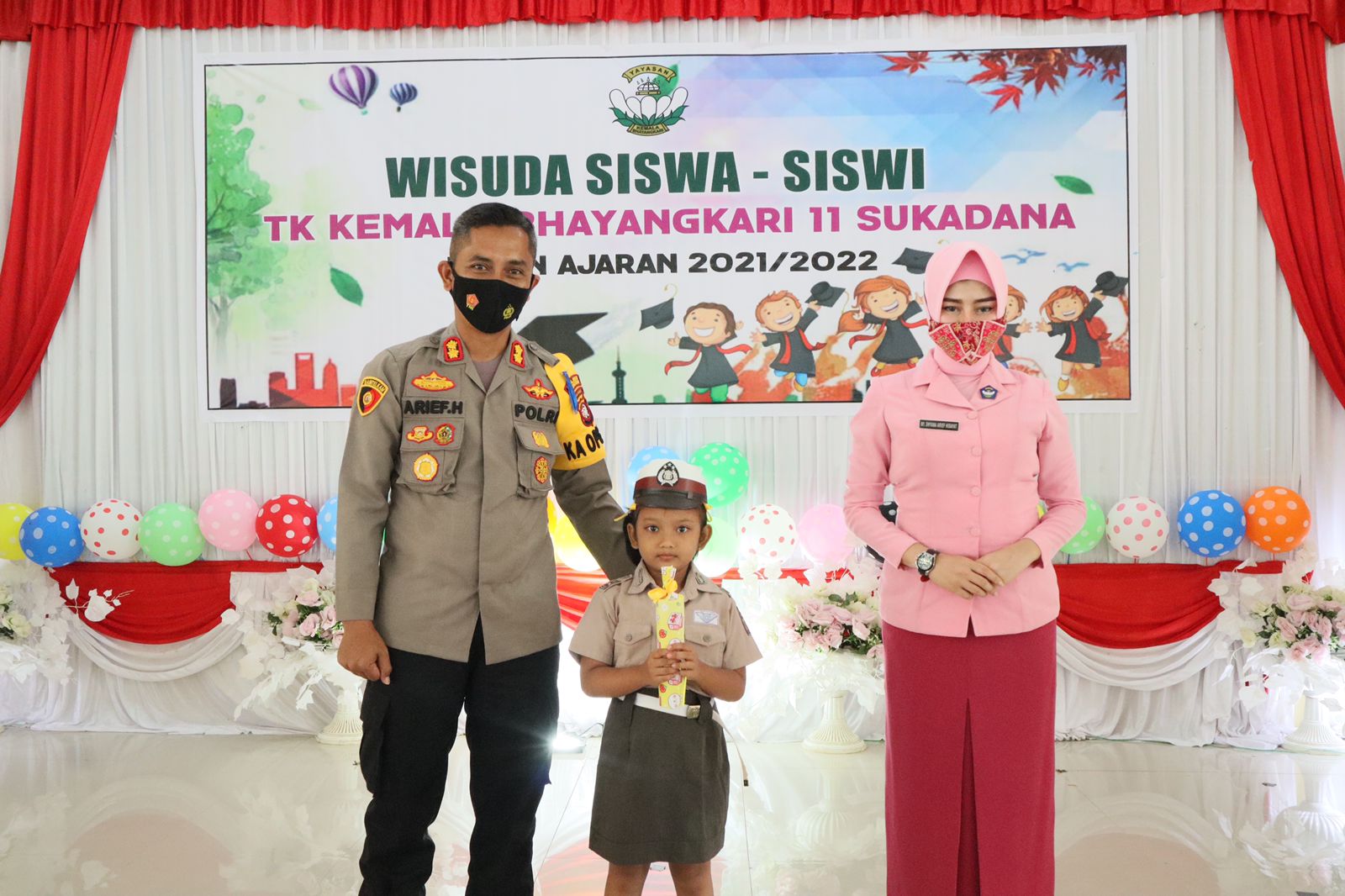 Kayong Utara – Kapolres Kayong Utara AKBP. Arief Hidayat, SH, S.I.K bersama ketua Bhayangkari cabang Kayong Utara Ny. Dhyana Arif Hidayat menghadiri langsung gelaran wisuda siswa-siswi tahun ajaran 2021/2022 TK Kemala Bhayangkari Kayong Utara, di gedung Balai Nirmala Kayong Utara, Selasa ( 21/06/2022)