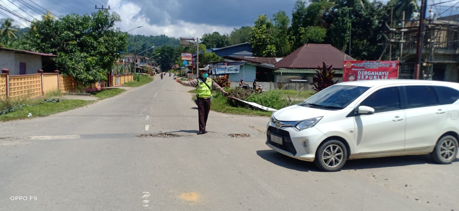 Bengkayang- Personil Satuan Lalu Lintas Polres Bengkayang melaksanakan pengaturan lalu lintas di hari libur untuk ciptakan rasa aman dan nyaman pengguna jalan dalam beraktivitas serta cegah terjadinya kecelakan lalu lintas di jalan raya merupakan tugas pokok yang tidak lepas dari kepolisian, Minggu (29/08/2021) Pagi.