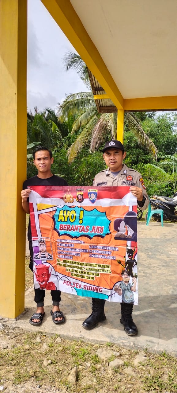 Dalam rangka menjaga situasi kamtibmas tetap kondusif di wilayah kecamatan Siding Himbauan larangan praktek perjudian dilakukan Bripka Nandang Prasojo.