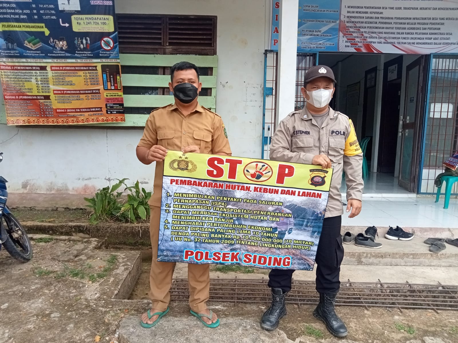 Ditempat terpisah Kapolsek Siding Ipda Bambang Rudiyanto menuturkan bahwa melalui kegiatan sambang dan sosialisasi yang di lakukan rutin oleh anggotanya merupakan salah satu upaya Kepolisian khususnya Polsek Siding Polres Bengkayang Polda Kalbar untuk mencegah bencana kebakaran hutan maupun lahan sejak dini di wilayahnya.