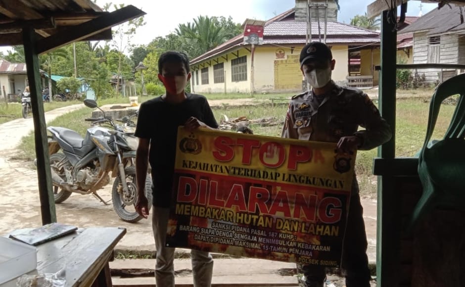 Mengantisipasi kebakaran hutan dan lahan (Karhutla), Polsek Siding mensosialisasikan larangan Karhutla kepada masyarakat Kecamatan Siding, Kabupaten Bengkayang, Kalbar, Senin(31/10/2022).