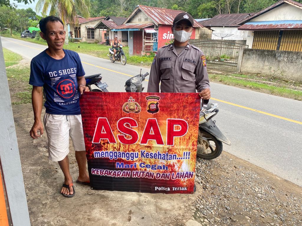 Polda kalbar, Polres Bengkayang, Polsek Teriak. Dengan adanya himbauan Pemerintah tentang bahaya karhutla “Mari bersama-sama patuhi agar tidak terdapat titik titik api di wilayah sekitar kita” demikianlah himbauan Bhabinkamtibmas yang tidak henti-hentinya menyampaikan himbauan baik melalui tapka, menggunakan banner maupun melalui perangkat media sosial, yang diharapkan masyarakat tetap mematuhi himbauan pemerintah yang dilaksanakan pada hari Rabu, (26/10/2022)