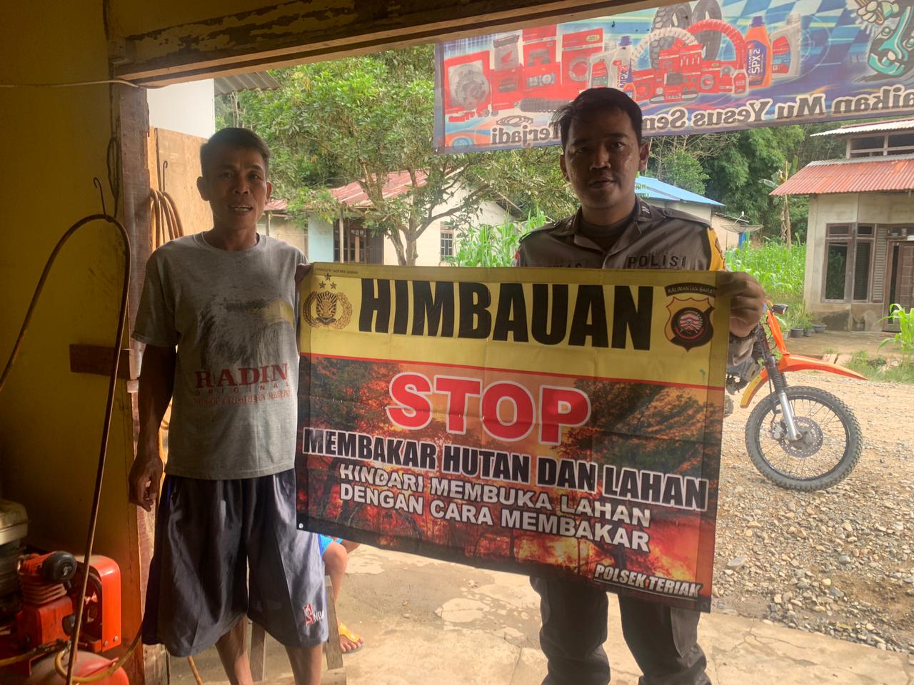 Himbauan dan Sosialisasi mengenai bahayanya jika terjadi karhutla diwilkum Polsek Teriak ini terus dilakukan dengan mengedepankan dan menerjunkan semua Bhabinkamtibmas Polsek Teriak. Para Bhabinkatibmas turun ke Masing-masing Desa Binaanya dan menyambangi rumah-rumah warga untuk mengingatkan dan memberitahukan mengenai larangan karhutla, serta melakukan foto bersama warga dengan media spanduk yang bertuliskan larangan membakar hutan dan Lahan.