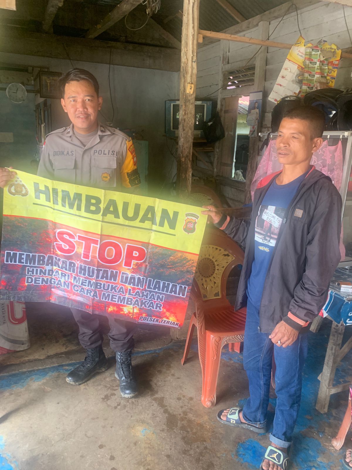 Himbauan dan Sosialisasi mengenai bahayanya jika terjadi karhutla diwilkum Polsek Teriak ini terus dilakukan dengan mengedepankan dan menerjunkan semua Bhabinkamtibmas Polsek Teriak. Para Bhabinkatibmas turun ke Masing-masing Desa Binaanya dan menyambangi rumah-rumah warga untuk mengingatkan dan memberitahukan mengenai larangan karhutla, serta melakukan foto bersama warga dengan media spanduk yang bertuliskan larangan membakar hutan dan Lahan.