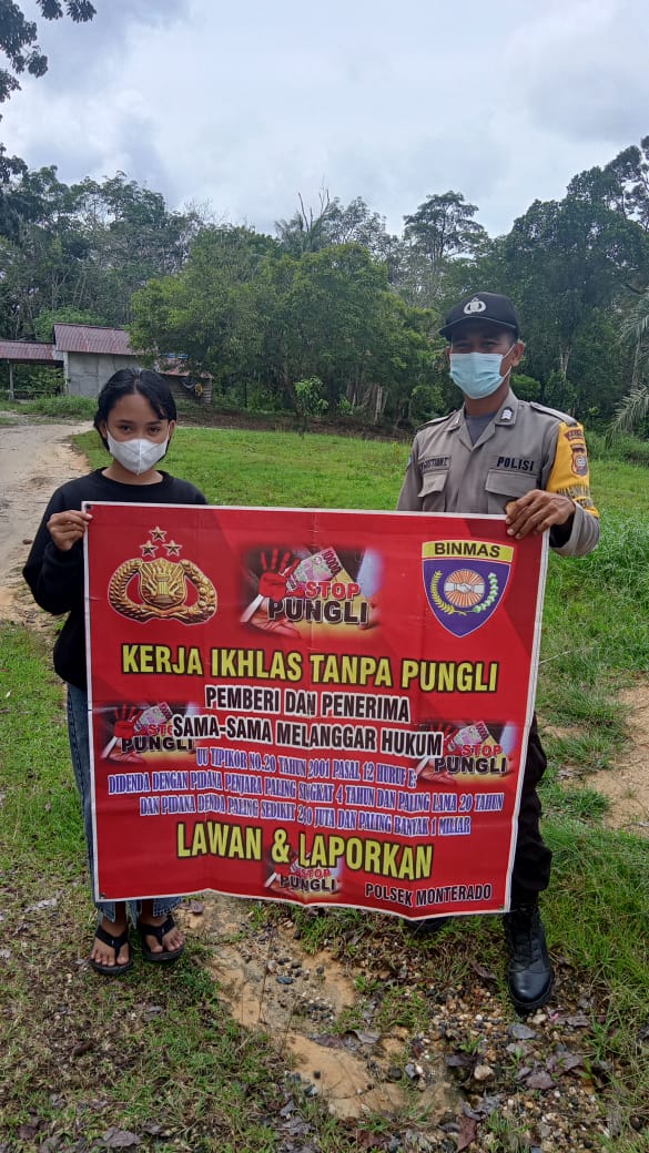 Di tempat terpisah Kapolsek Monterado IPDA Kusnandar mengatakan, “Sosialisasi ini untuk mengingatkan warga secara langsung untuk dapat bekerjasama menghilangkan dan melaporkan segala kegiatan Pungli”.