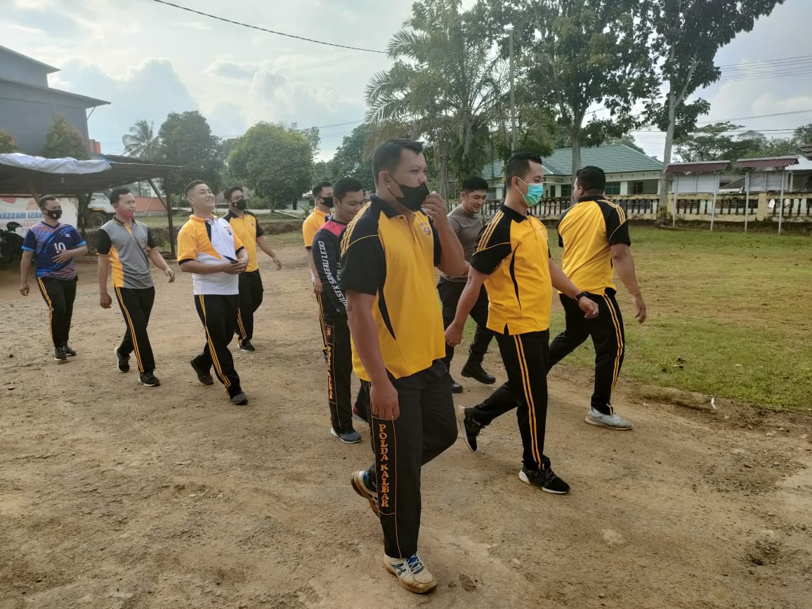 Kapolsek Sanggau Ledo, Ipda Dwiyanto Bhanu.S, S.I.P Mengajak seluruh anggotanya melakukan olah raga sore hari,Kamis 27 Januari 2022