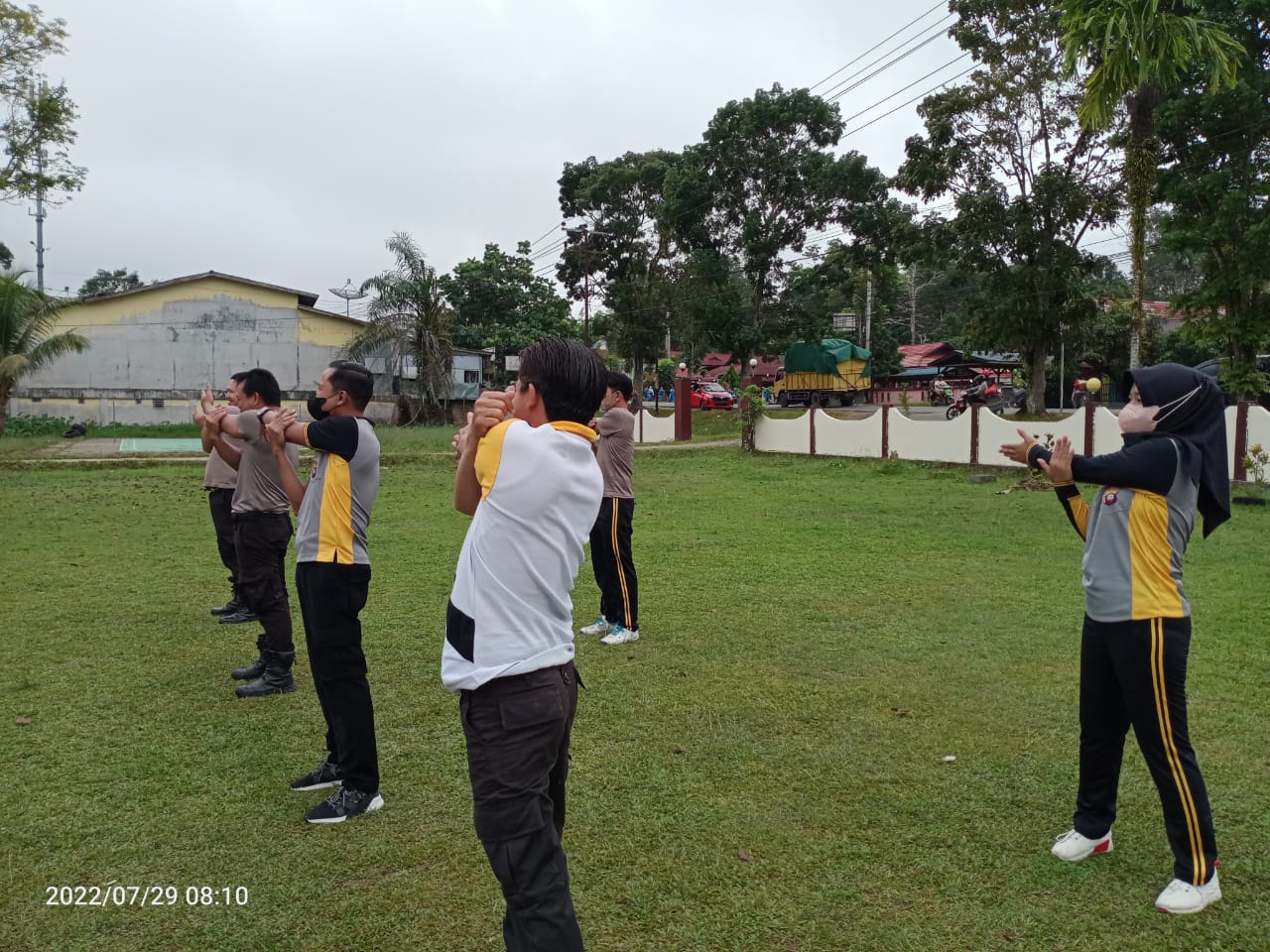 Untuk menjaga stamina, kesehatan serta imunitas tubuh di masa pandemi Covid-19, Polsek Bengkayang melaksanakan Olah raga pagi Jumat (29/07/2022).